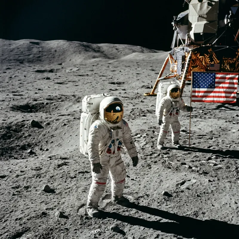 A moment frozen in time, the moon landing captures the awe-inspiring achievement of humanity reaching another celestial body. This incredible photograph showcases the lunar surface, dotted with gray craters and bathed in the soft glow of reflected sunlight. Astronauts stand tall in their bulky white spacesuits, their visors reflecting the Earth above them, symbolizing the tireless dedication and courage required for such a monumental endeavor. The extraordinary image, captured with remarkable clarity and precision, allows viewers to marvel at this historic triumph and feel a profound sense of wonder at the vastness of the universe.