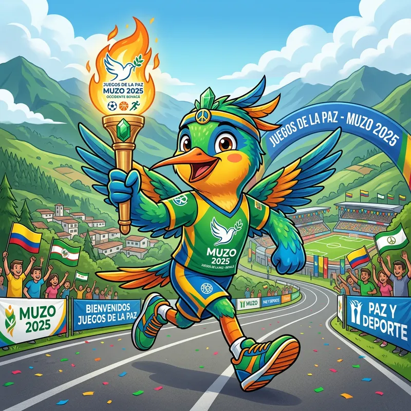 I need a cartoon character for the Peace Sports Games in Western Boyacá. Muzo 2025.