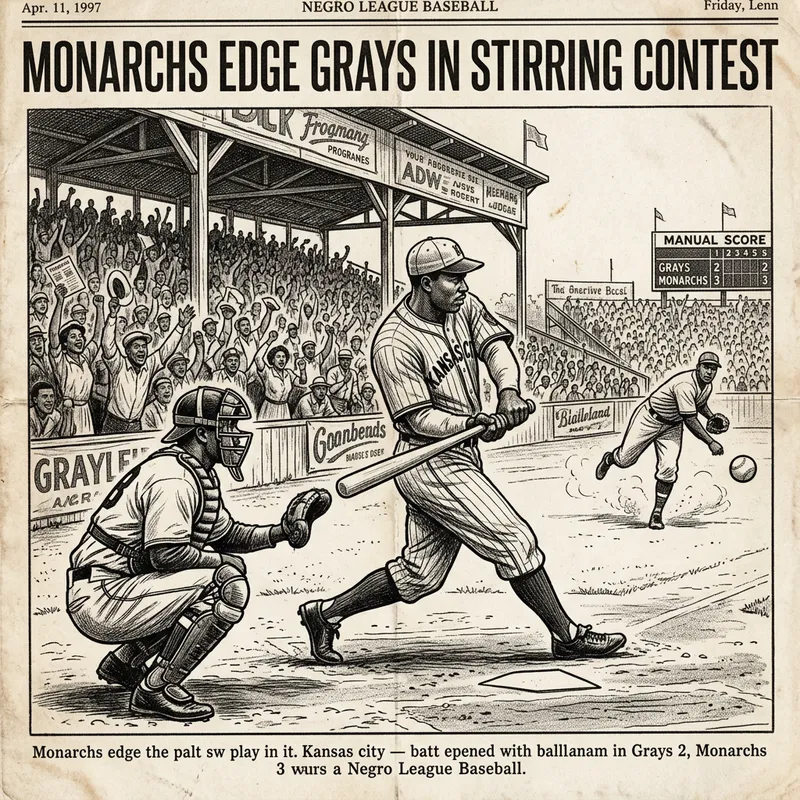 Create an image that brings to life a scene from the historic Negro League Baseball. Capture the atmosphere of a game in action, with players in the middle of the sport. The crowd can be seen cheering loudly in the background. Now, transform this vivid scene into a black and white vintage newspaper illustration. Show the creases and textures of the old paper to sell the vintage feel and pay homage to the bygone era in which these games took place.