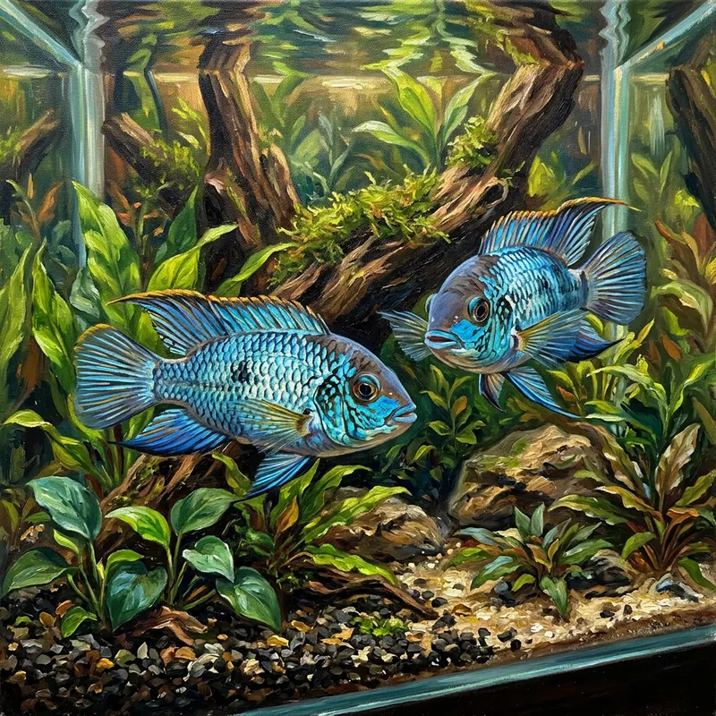 Two Electra Blue Acaras - An Exquisite Oil Painting
