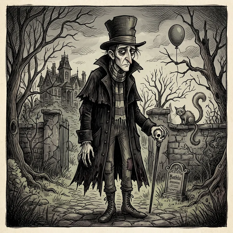 Stylized Edward Gorey-Inspired Character Portrait