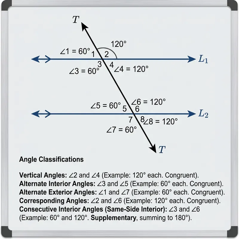 Understanding Angles with Parallel Lines and a Transversal