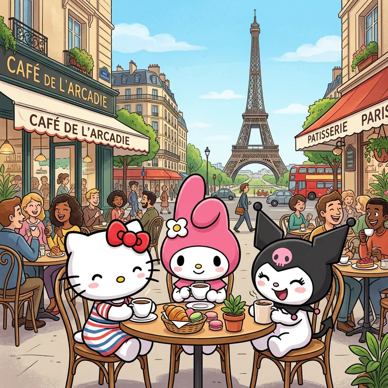 Lively Paris Café Scene with Cartoon Characters