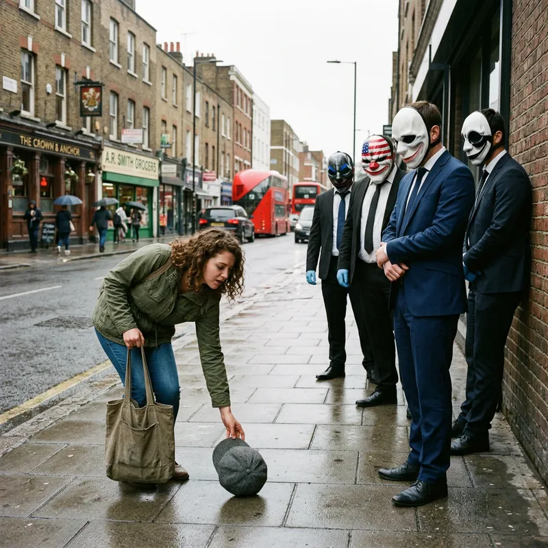 Payday Characters Discovering a Hat on the Ground