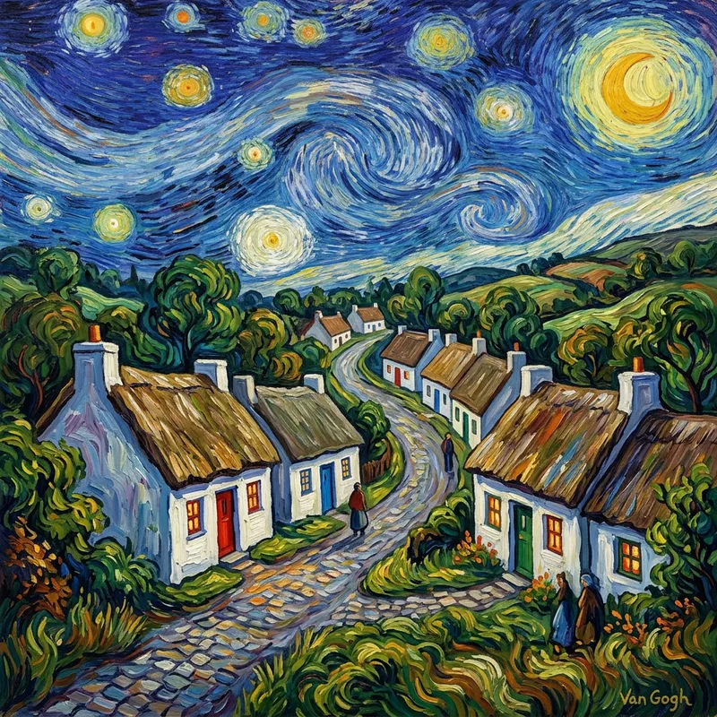 Picturesque Irish Village in Van Gogh Starry Night Style