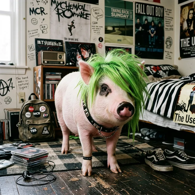 Meet the Pig with Early 2000s Green Emo Hair