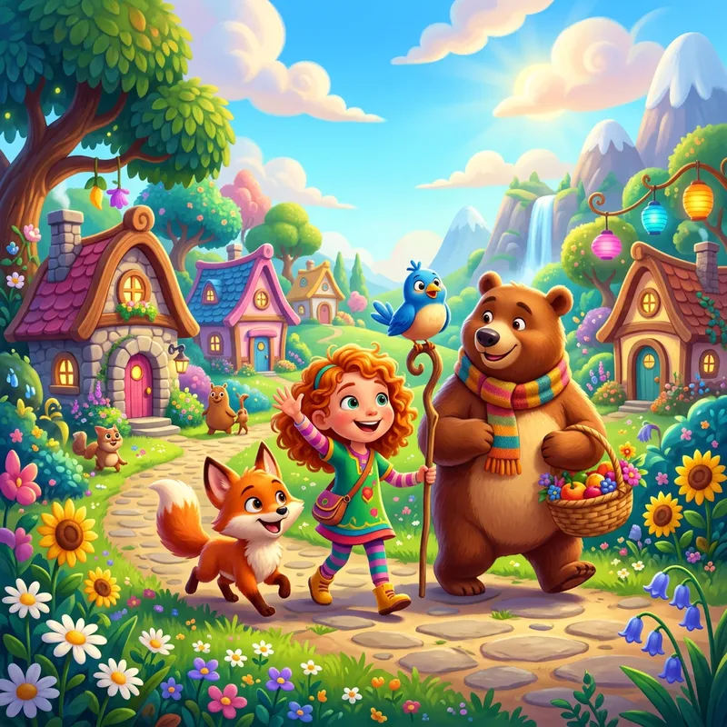 Generate an image inspired by the themes and styles common in animated children's films, such as vivid colors, simple shapes, and friendly characters.