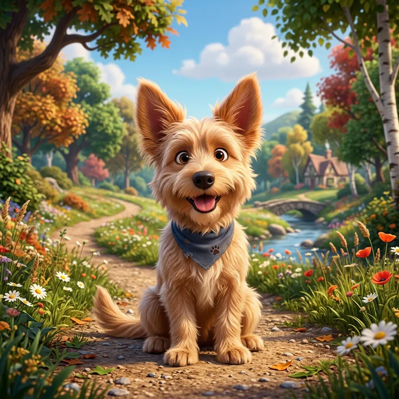 Pixar-Style Digital Animation of Light Brown Dog with Fox-Like Ears