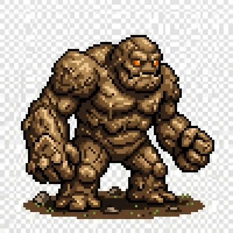 Pixel Art Mud Golem in 32x32 Dimensions