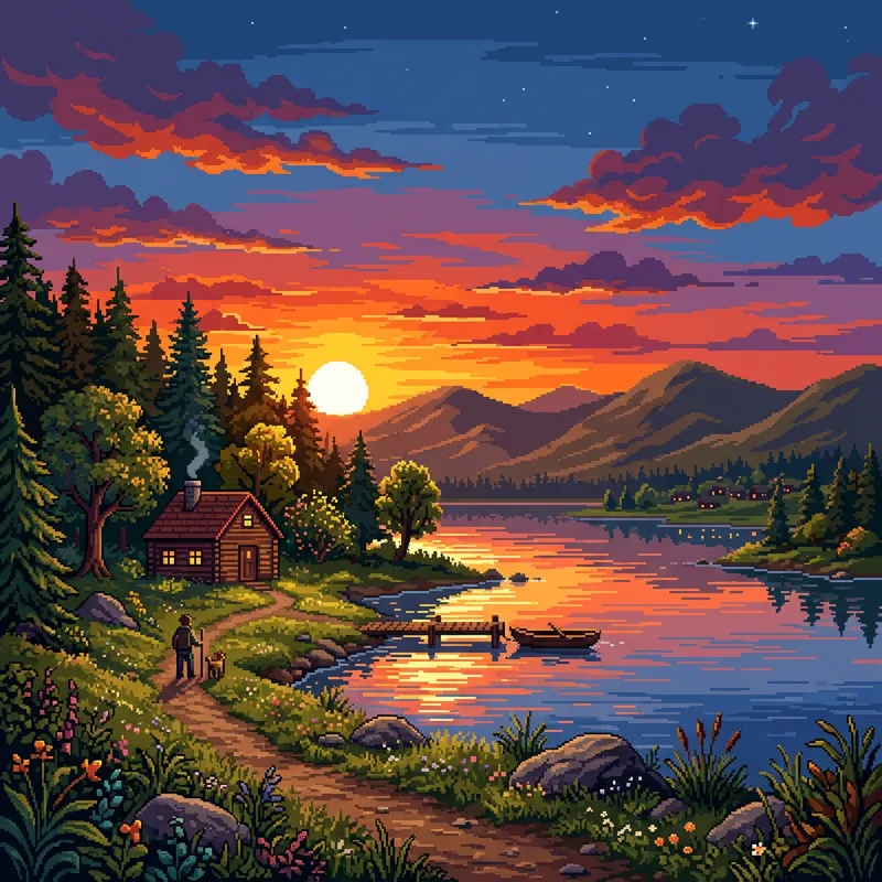 Stunning Pixel Art of a Sunset Landscape