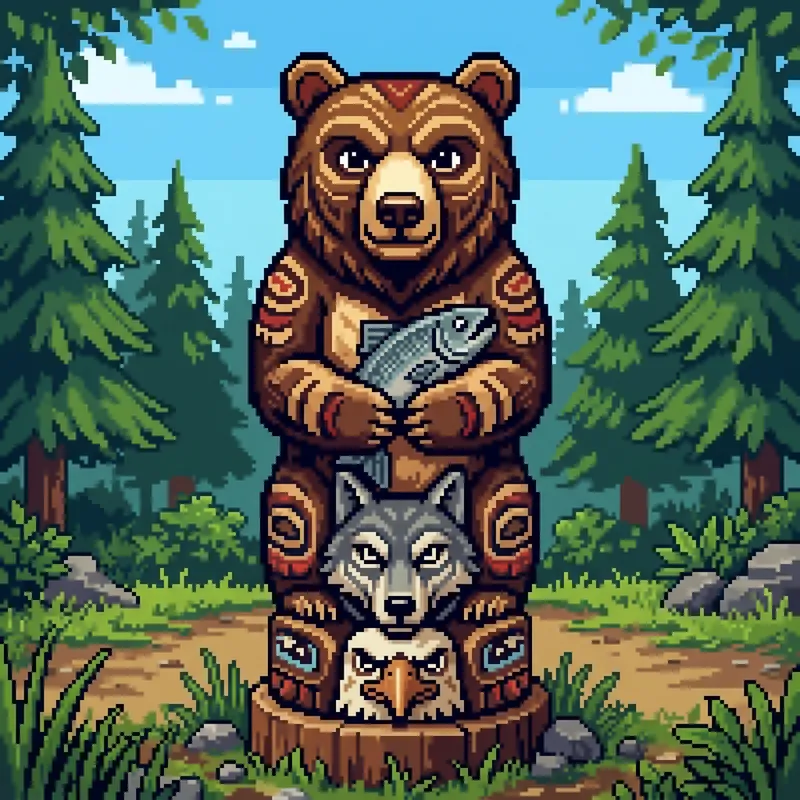 Original Prompt: totem de un oso en 2d en pixeles