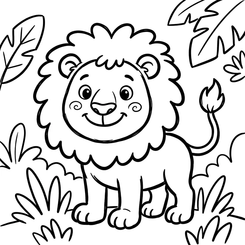 Black-and-White Lion Cartoon for 3-Year-Olds Coloring