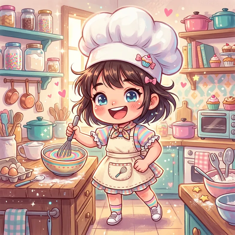 Playful Chibi Girl in Chef's Hat
