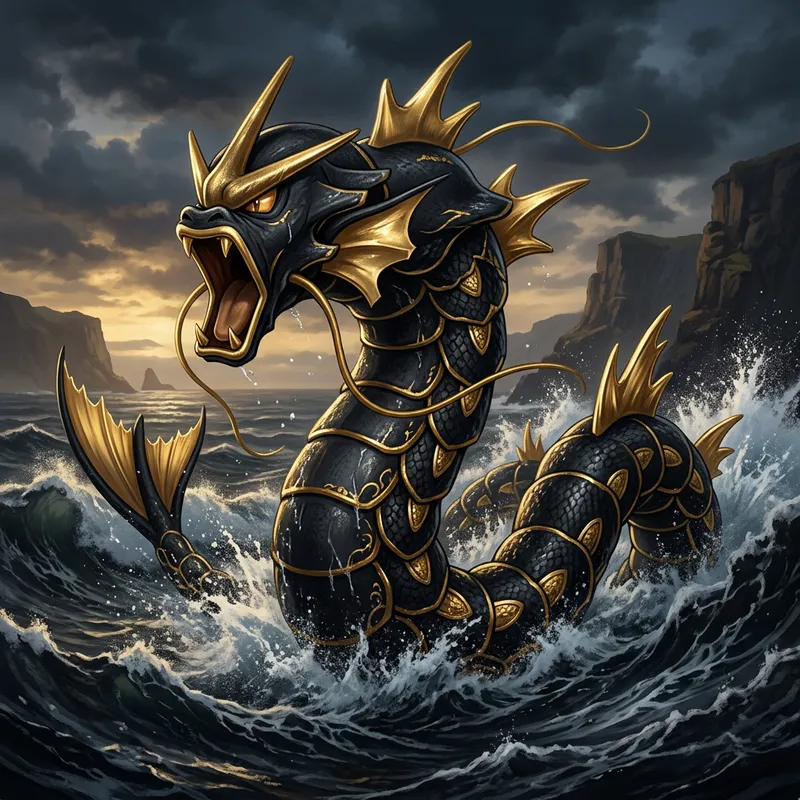 Black and Gold Gyarados: A Pokémon Masterpiece
