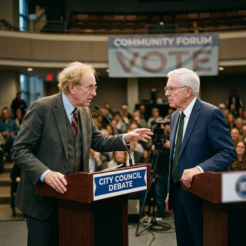 Political Debate Scene: Elderly Males with Blonde and White Hair