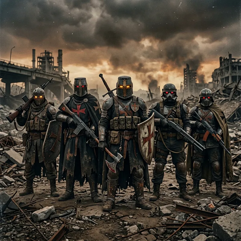 Post-Apocalyptic Templar Knights in Rugged Armor