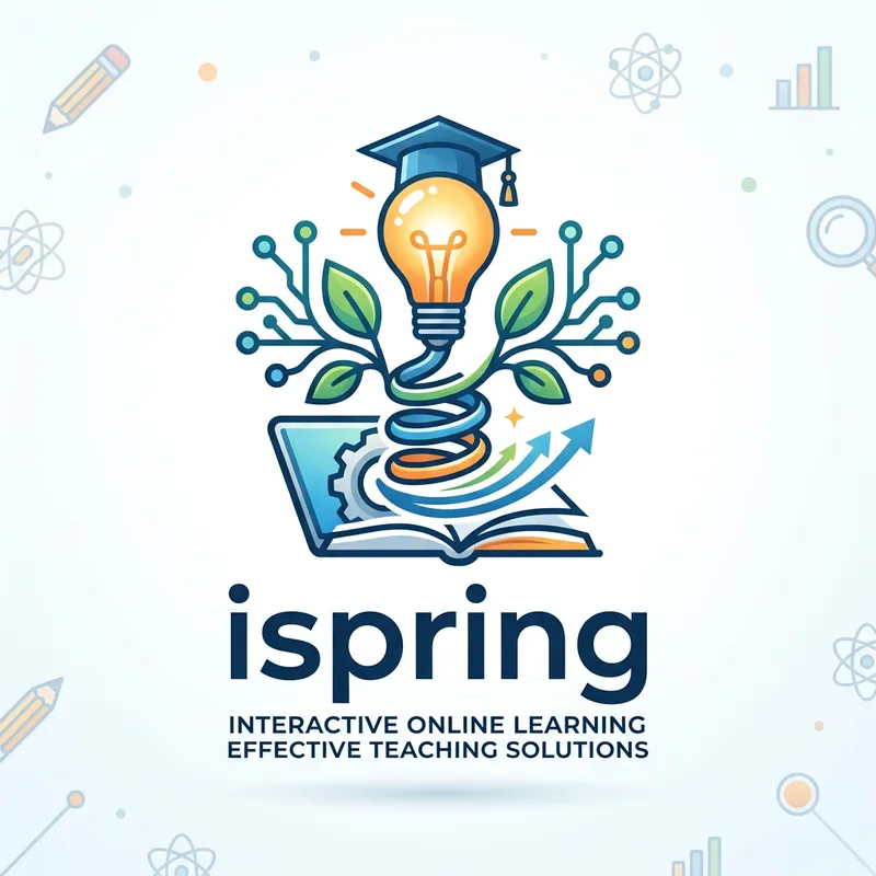 Create a professional educational image of a logo which illustrates the essence of the website 'ispring'. The design should clearly portray the concept of interactive learning and effective online teaching methods. The logo should be easy to understand and aesthetically pleasing. Incorporate elements related to education and technology into the design, such as books, graduation caps, laptops, gears, or light bulbs. Note: the logo should not directly incorporate or imitate the existing 'ispring' logo or other copyrighted logos.