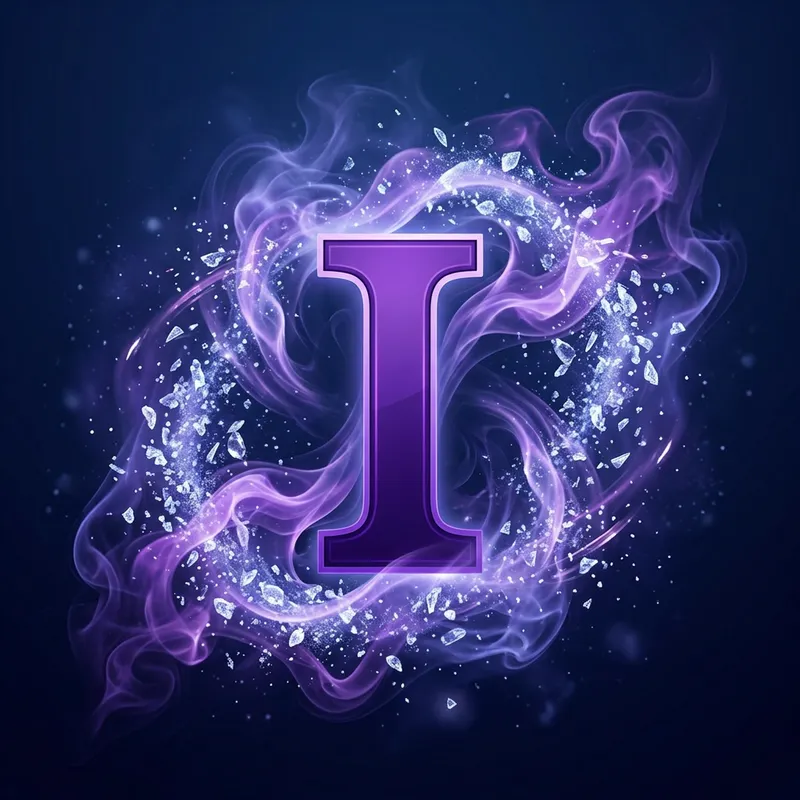 Purple Letter I Logo Design with Smoke and Ice Particles