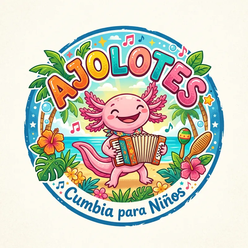 I want a logo for a children's cumbia music group called Ajolotes. Keep in mind that it is tropical music for kids.