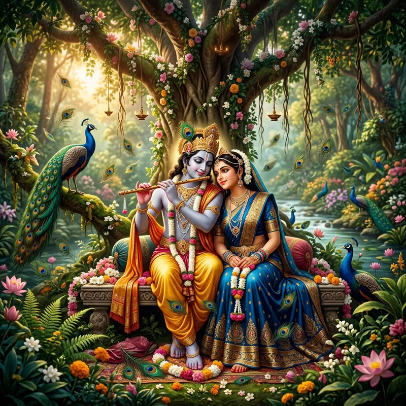 Radha and Krishna: Eternal Love in a Lush Forest