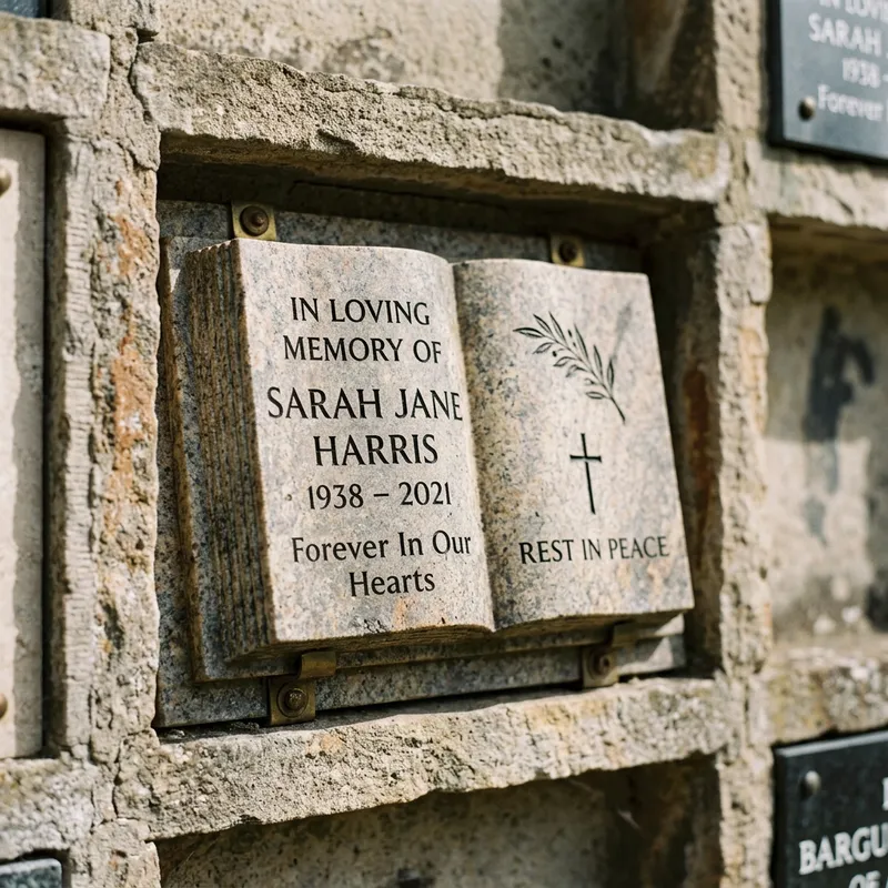 Realistic Memorial Plate in Columbarium - Stone Book Design