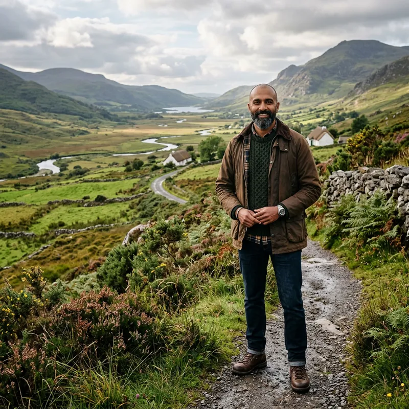 Realistic South Asian Man in Irish Countryside
