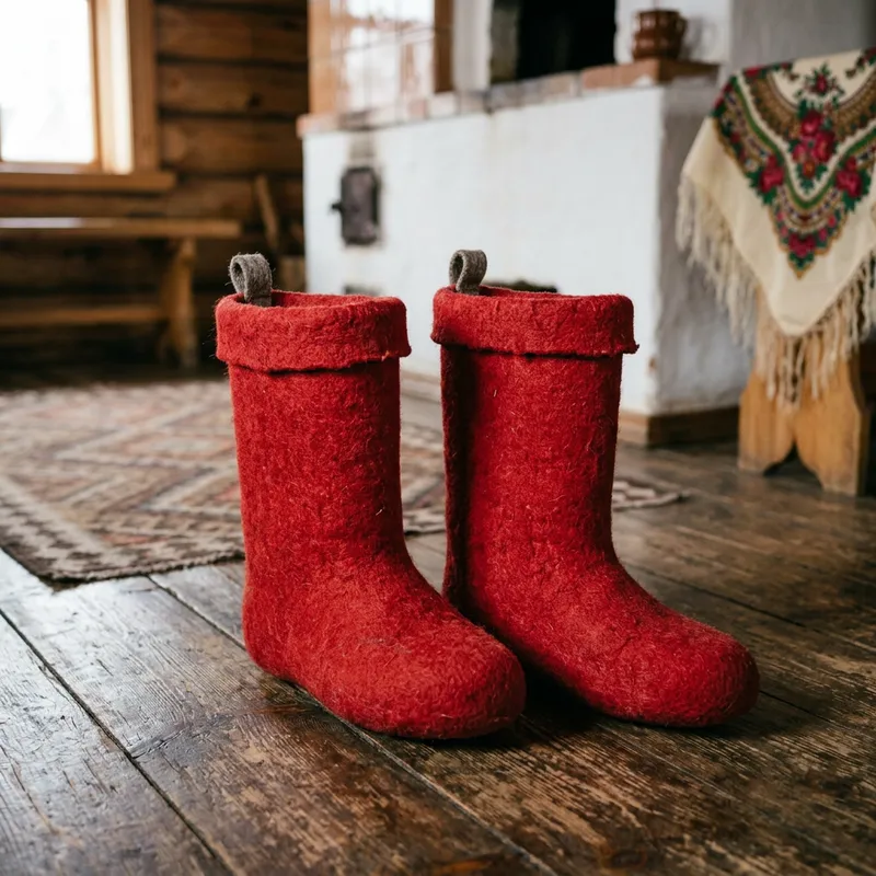 Red Valenki Boots in Vibrant Red