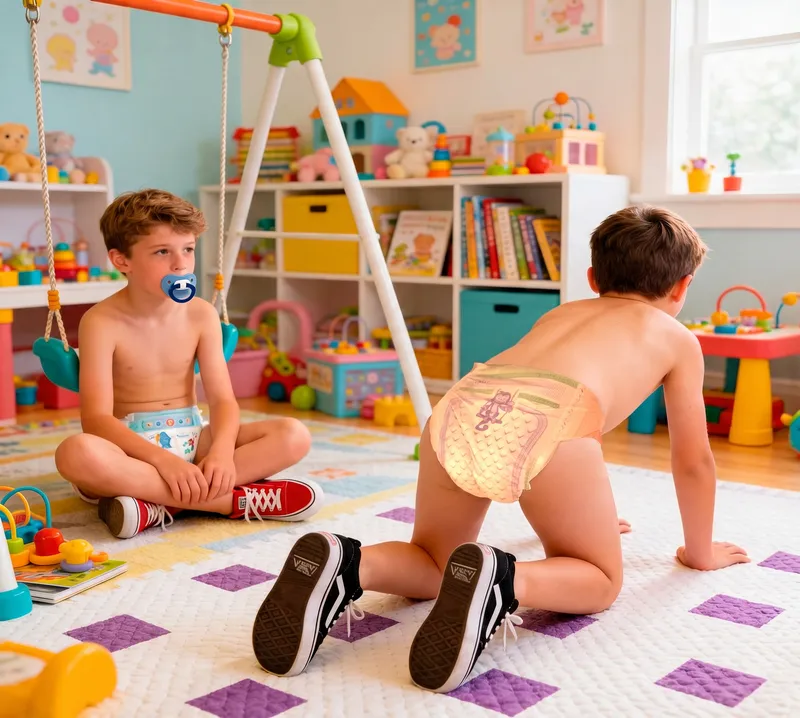 replace the diaper on the boy on the right with the baby diaper from the attached image.