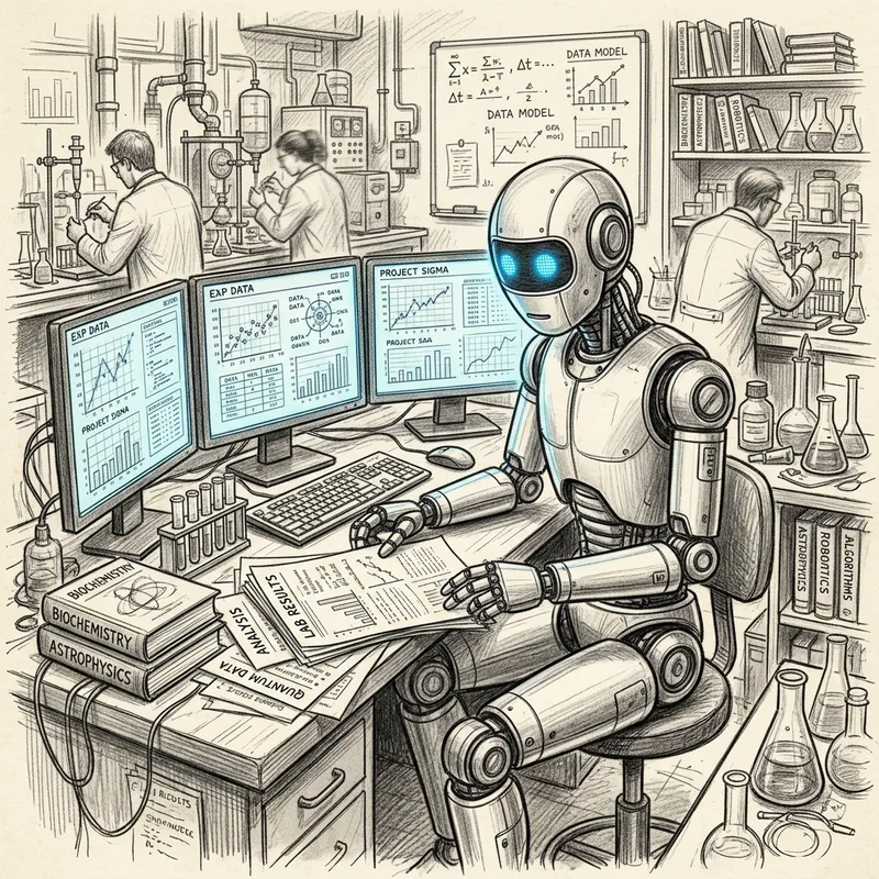 Detailed Pencil Drawing of Robot Intern Research Assistant