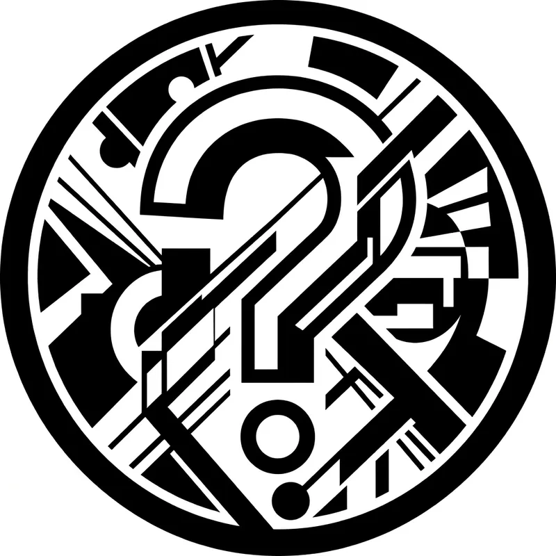 Create a black and white circular logo featuring a question mark. The design should emanate early 20th-century Russian Constructivism, with bold lines and geometric shapes that were common in the works created during this era. Influences such as the designs of artists like El Lissitzky and Alexander Rodchenko should be conclusively present. The logo should be rendered in vector graphics with a clean and minimalistic approach.