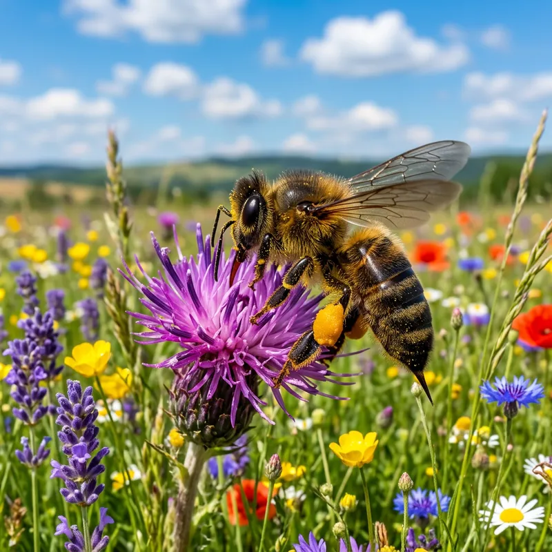 Russian Honey Bee in Colorful Wildflower Meadow