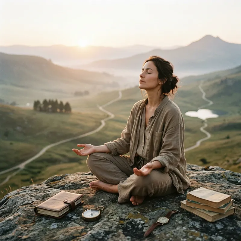 A representation of self-surrender and the need to dissociate oneself from traditional methods in order to focus the mind on all life's goals.