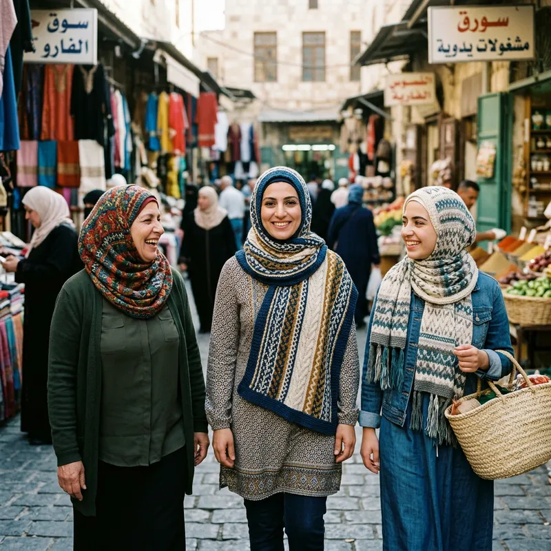 Send me a picture of women wearing alfaro knitted hijab.