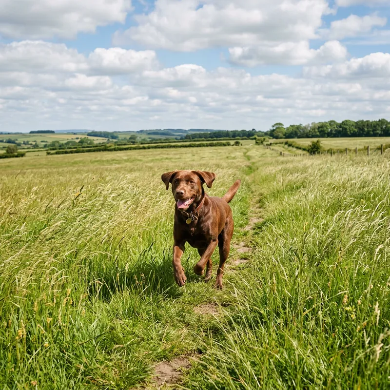 Serene Dog in Vast Field: A Tranquil Nature Scene