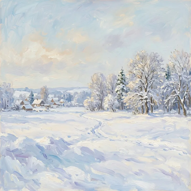 Serene Winter Landscape in Impressionist Style