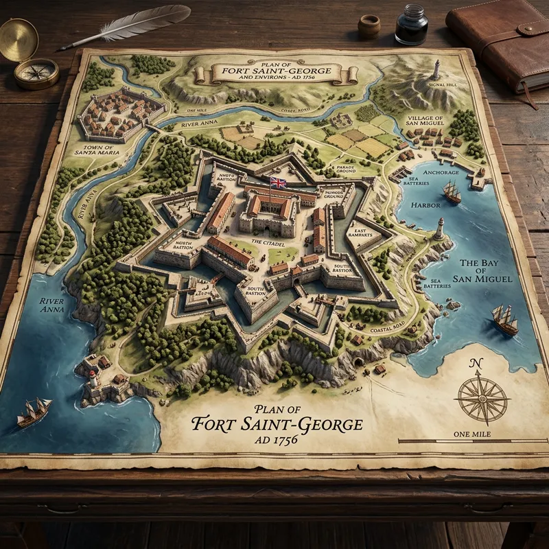 A 3D image of a detailed, historic fort map