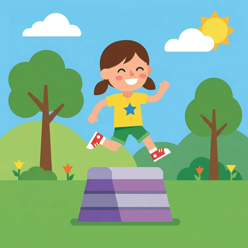 Cute Girl Skipping Over Vault in Geometric Park Scene
