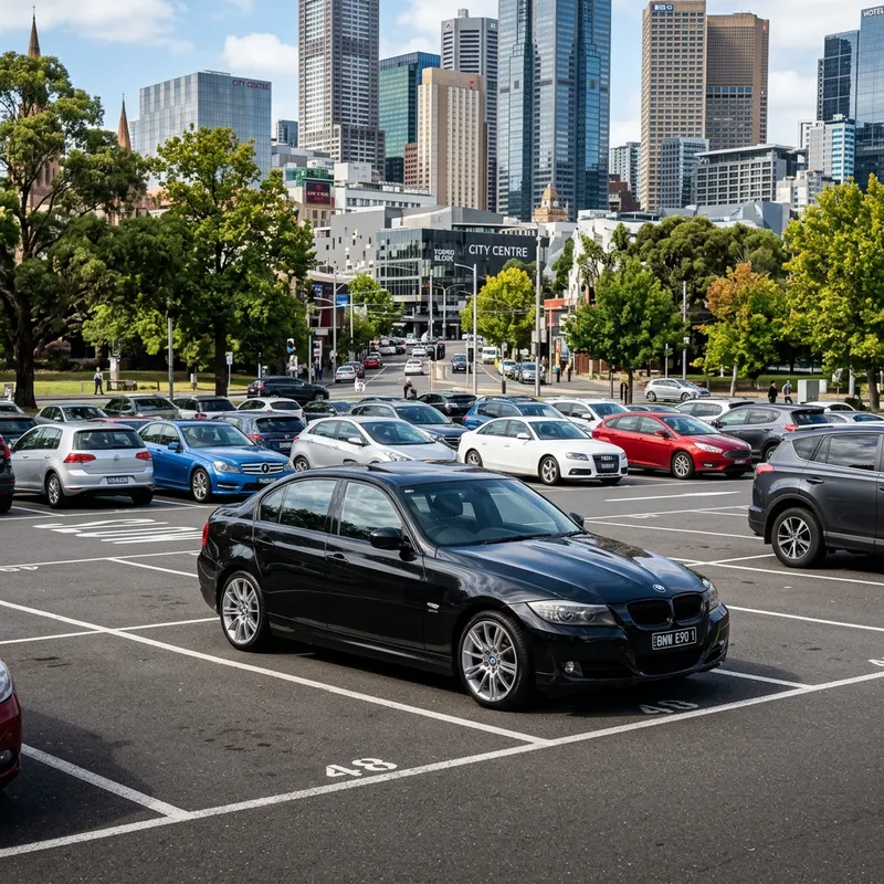 Sleek Black BMW E90 in Proper Parking Lot
