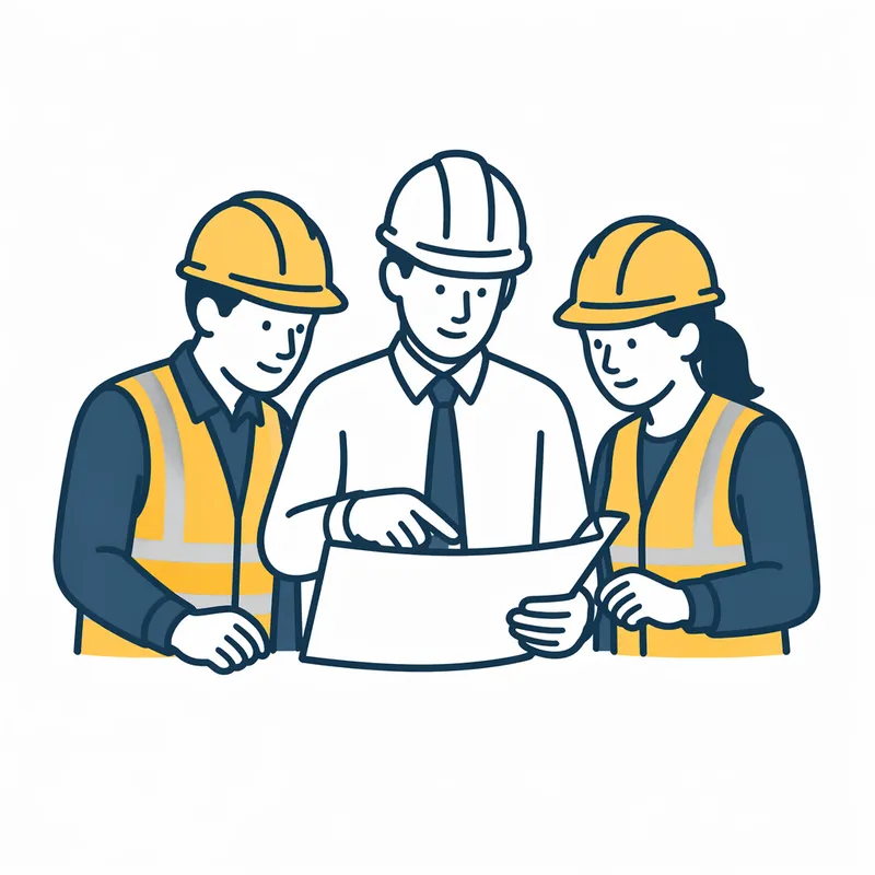 Construction Team Reviewing Plans - Iconography