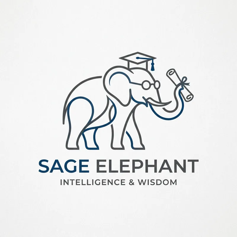 Visualize a logo that features an elephant demonstrating its intelligence. The elephant can be stylized and in a minimalist design to capture the essence of the brand. Its shape could be creatively used to suggest intelligence, possibly with glasses or a graduation cap. The color palette should be soothing and business-like, possibly using shades of grey and blue. The lines should be elegant and simple, reflecting an appreciation for minimalist logo design. The elephant's appearance should convey knowledge, wisdom, and intelligence.