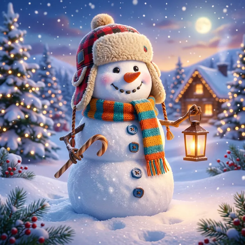 Snowman Wearing Trapper Hat in 3D Animation Style