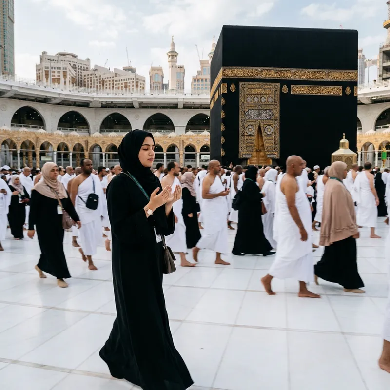 Original Prompt: طالبة تدور عول الكعبة وهي تدعي