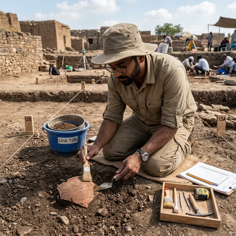 South Asian Male Archaeologist Unearthing Artifacts