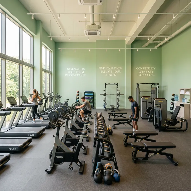 Premium Gym Equipment in Soft Pastel Green Fitness Room