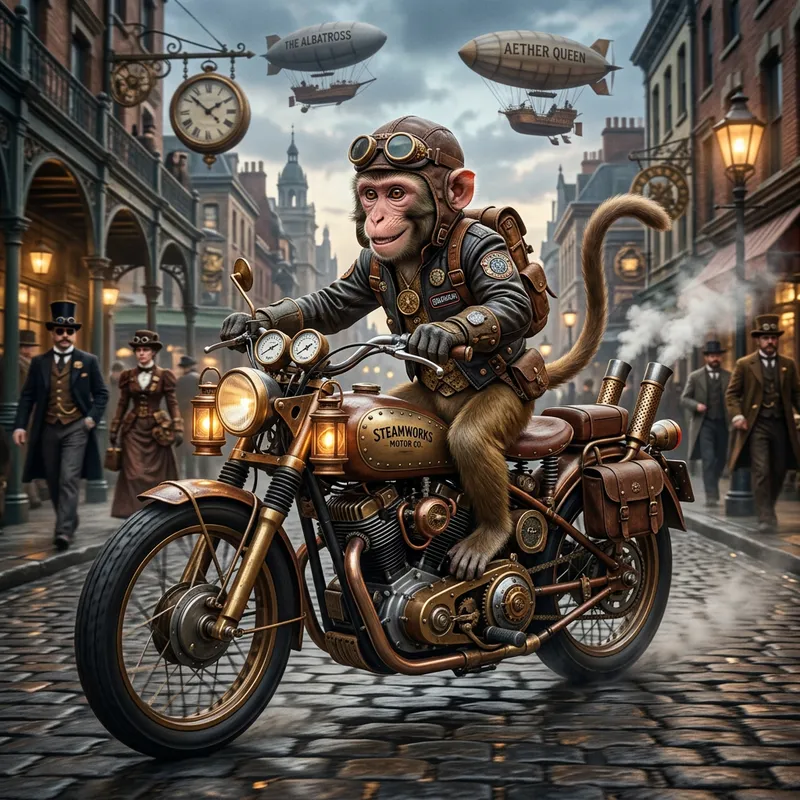 Steampunk Style Monkey on a Motorcycle