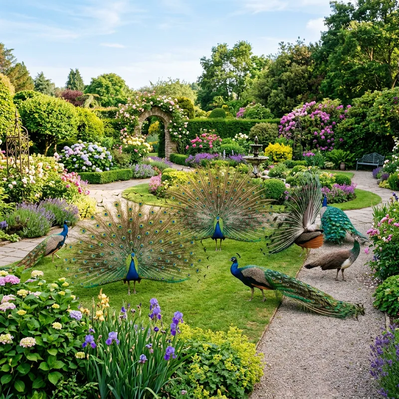 Stunning Peacocks in Lush Garden