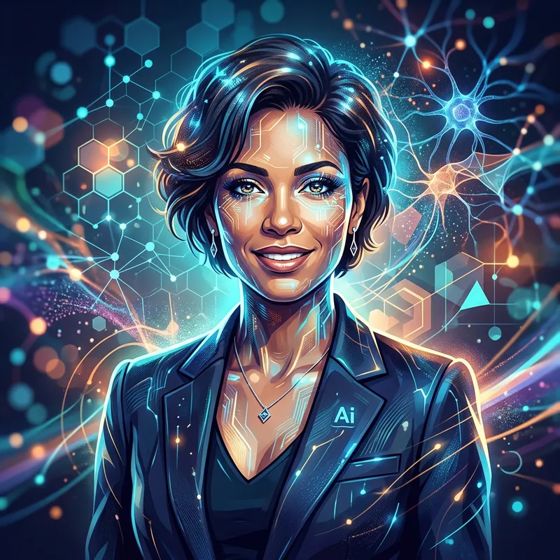 Stylized AI avatar with artistic effects and professional appearance.
