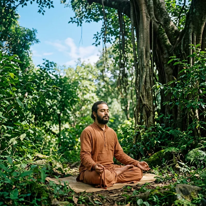 Swami Vivekananda Meditating in Tranquil Natural Landscape
