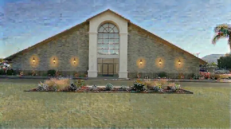 Take away the cross... put only 3 lights across on each side of building.