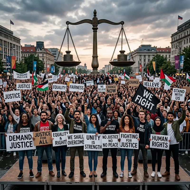 Team of 10 People Advocating for Justice Against Large Crowd